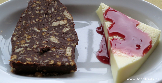 Εμείς δοκιμάσαμε σαλάτα λάχανο-καρότο, μπουγιουρντί, τηγανιά κοτόπουλο και σουτζουκάκια και τα συνοδεύσαμε με κόκκινο ημίγλυκο κρασί. Στο τέλος, μας κέρασαν γλυκό μωσαϊκό και πανακότα. Πληρώσαμε περίπου 12 ευρώ ο καθένας.