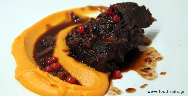 Όλα αυτά ήταν ένα καλός προάγγελος για το τι θα ακολουθούσε. Στη συνέχεια, έκαναν την εμφάνισή τους τα κυρίως πιάτα. Επιλέξαμε και δοκιμάσαμε: σφυρίδα με μελιτζάνα σε κενό αέρος και σoς λεμονιού, μοσχαρίσια μάγουλα με πουρέ γλυκοπατάτας και φρούτα του δάσους και μπιφτέκι με τρεις κιμάδες και τηγανιτές πατάτες.