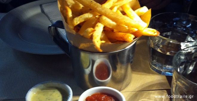 Τα παιδιά στο service ήταν ιδιαίτερα εξυπηρετικά, παρόλο που τους πετύχαμε σε ώρα αιχμής. Διαλέξαμε το πιάτο ημέρας – συκώτι μοσχαριού με καραμελωμένα κρεμμύδια και ρόκα καθώς και λαζάνια με λαχανικά και ρικόττα. Επίσης, για σαλάτα δοκιμάσαμε τη ρόκα με το κατσικίσιο τυρί ενώ συνοδέψαμε τα πιάτα μας με φρέσκες τηγανιτές πατάτες. Όλα ήταν εξαιρετικά νόστιμα, ενώ το κρασί -λευκό μοσχοφίλερο- μας βοήθησε να ξεφύγουμε για λίγη ώρα από το βουητό της πόλης. Πληρώσαμε από 20 ευρώ το άτομο.